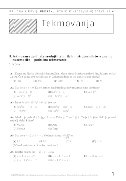 9. tekmovanje dijakinj in dijakov srednjih tehniških in strokovnih šol v znanju matematike