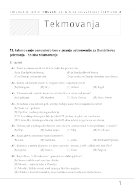 13. tekmovanje osnovnošolcev v znanju astronomije za Dominkova priznanja - šolsko tekmovanje